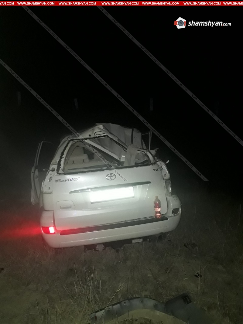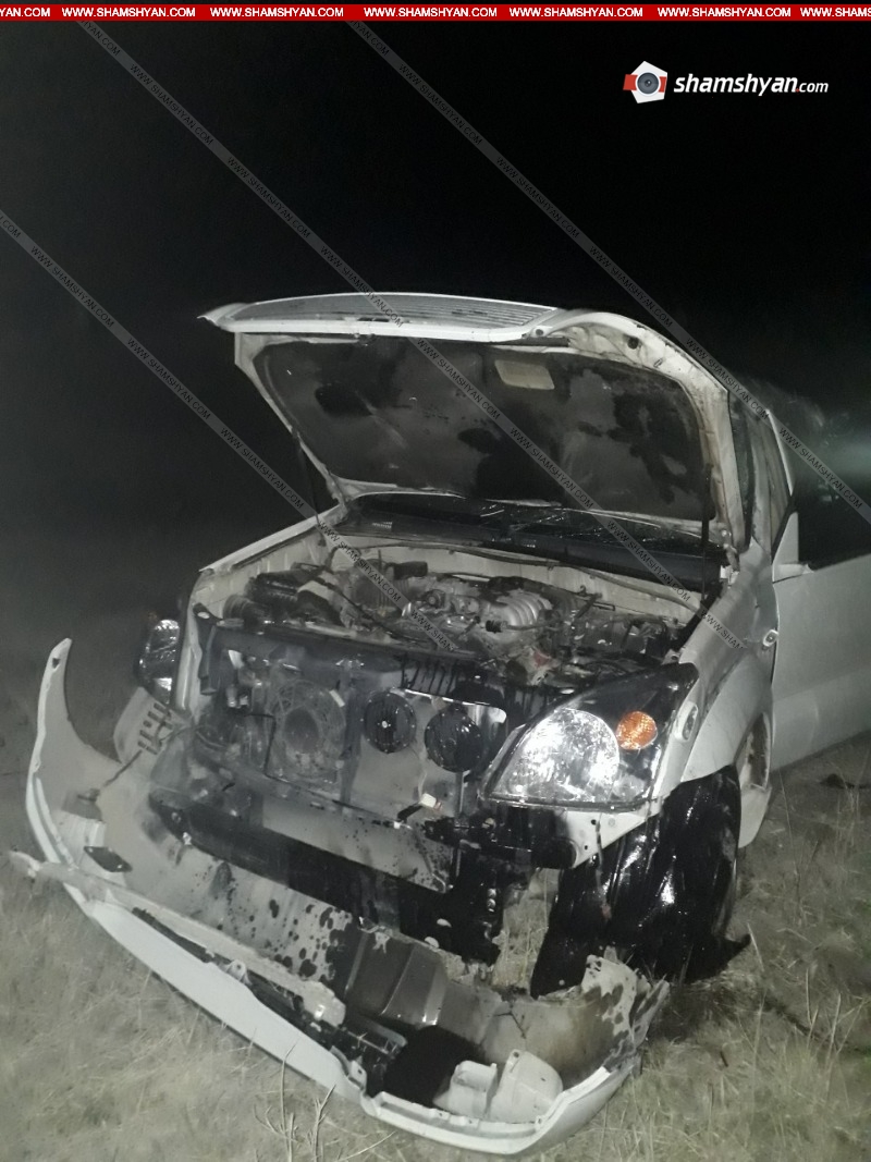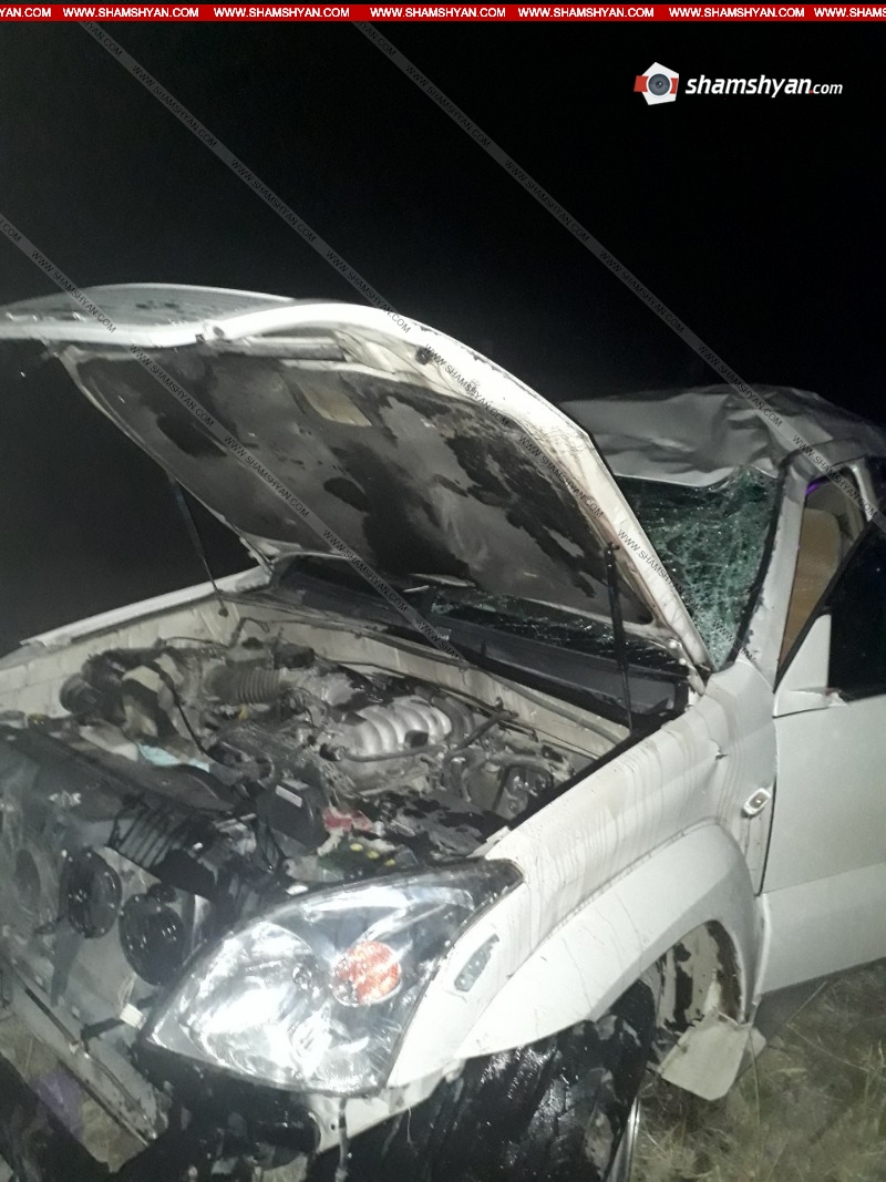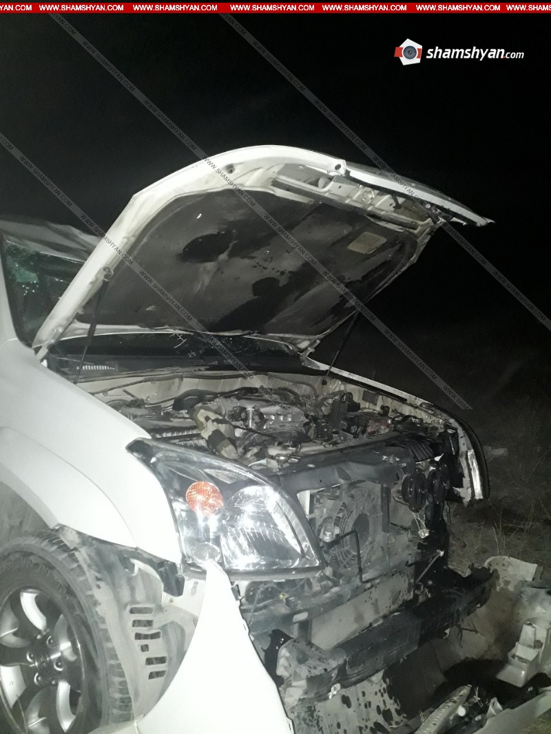 Ապրիլի 6-ին, խոշոր ավտովթար է տեղի ունեցել Արարատի մարզում: Ժամը 00:40-ի սահմաններում, Արարատ քաղաքի բնակիչ, 37-ամյա Արմեն Կարապետյանը՝ իր վարած Toyota Land Cruiser մակնիշի 70 QQ 907 համարանիշի ավտոմեքենայով, Երևան-Մեղրի ավտոճանապարհի 51-րդ կմ հատվածում, ոսկու կորզման ֆաբրիկայի բանավանի կամրջի հատվածում դուրս է եկել ճանապարհի երթևեկելի գոտուց, և կամրջից մի քանի մետր շրջվելով, հայտնվել դաշում: Ինչպես հայտնում է ֆոտոլրագրող Գագիկ Շամշյանը, վթարի հետևանքով վարորդ Ա. Կարապետյանը, ուղևորներ՝ Երասխ գյուղի բնակիչներ, 50-ամյա Վարդուհի Ավագիմյանը, 55-ամյա Արսեն Թադևոսյանը և Արմաշ գյուղի բնակիչ, 74-ամյա Խորեն Սինանյանը մարմնական վնասվածքներով տեղափոխվել են Արարատի բժշկական կենտրոն: Օպերատիվորեն դեպքի վայր են ժամանել Ճանապարհային ոստիկանության 2-րդ սպայական գումարտակի 1-ին վաշտի 2-րդ դասակի ծառայողները՝ վաշտի հրամանատար Վահան Էվինյանի, դասակի հրամանատար Կարապետ Հարությունյանի գլխավորությամբ: Օպերատիվորեն ժամանել են նաև Արտակարգ իրավիճակների նախարարության Փրկարար ծառայության Արարատի հրշեջ-փրկարարական ջոկատը՝ 1 մարտական հաշվարկով: Փրկարարները հոսանքազրկել են ավտոմեքենան, սահմանազատել տարածքը: Տեղում հետաքննչական աշխատանքները ղեկավարել է ՃՈ 2-րդ սպայական գումարտակի 1-ին վաշտի ավագ հետաքննիչ Արմեն Գաբրելյանը, ում կողմից փաստի առթիվ նյութեր են նախապատրաստվում: Լուսանկարները՝ Կարեն Գրիգորյանի Ծանուցում. Ենթադրյալ հանցանքի մեջ կասկածվողը կամ մեղադրվողը համարվում է անմեղ, քանի դեռ նրա մեղավորությունն ապացուցված չէ ՀՀ քրեական դատավարության օրենսգրքով սահմանված կարգով` դատարանի` օրինական ուժի մեջ մտած դատավճռով: