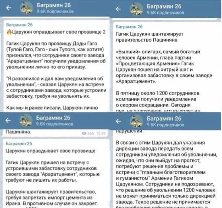 Շատ չի անցել վարչապետի այն հայտարարությունից, համաձայն որի պատասխանատվության պետք է ենթարկել բոլոր այն կեղծ օգտատերերին, ովքեր թաքնվելով կեղծ էջերի հետևում, զրպարտում են մարդկանց և վիրավորում: Անգամ այս հրահանգից հետո, ԱԱԾ տնօրեն Արթուր Վանեցյանը հայտարարեց, որ այդ կեղծ էջերից մեկի վարողին հայտնաբերել և ձերբակալել են: Հիմա ուզում եմ նույն հայտարարության շրջանակներում, նույն ձերբակալության մոտիվացիայով, ԱԱԾ ուշադրությունը սևեռել «Баграмян 26» տելեգրամի էջի /ալիքի/ վրա, որը վերջին շրջանում, պարբերաբար, անդրադառնում է ԲՀԿ նախագահ Գագիկ Ծառուկյանին և նրա հասցեին վիրավորական մեկնաբանություներ տարածում, էլ չենք ասում, որ դրանք ապատեղեկատվություն են իրենցից ենթադրում և ծնվել են զուտ հիվանդ երևակայության արդյունքում: Վստահ եմ, որ ԱԱԾ-ն խտրական մոտեցում չի ցուցաբերելու այս հարցում և ցանկացած նման հաղորդագրություն կառնի ուսումնասիրության, քանզի այդ գործելաոճը, երբ հանրությանը կեղծ ու զրպարտող լուրերով ապակողմնորոշում են և ըստ էության հակաքարոզչությամբ են զբաղվում, վտանգավոր է և վարակիչ, եթե մեկին-երկուսին պատժի չենթարկենք, ապա դա համատարած բնույթ կկրի: Հուսանք այս գրառումից հետո, այդ էջի իրական վարողը կհայտնաբերվի և նույնկերպ կենթարկվի պատասխանատվության, ինչպես եղավ «Դուխով Հայաստան» էջի դեպքում: