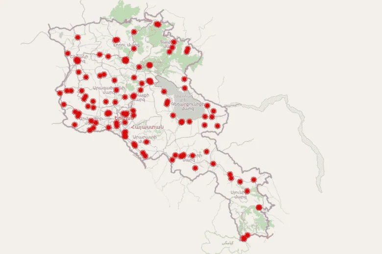 Հայաստանում COVID-19-ով վարակվածների քարտեզը