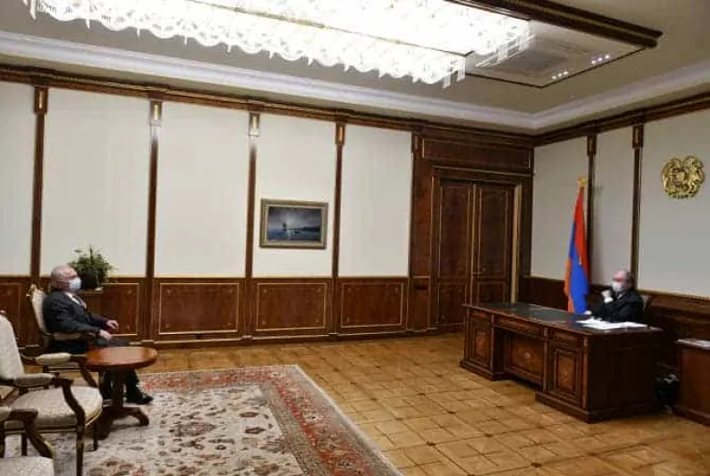 Как сообщили в Управлении по связям с общественностью аппарата президента Армении, на встрече была обсуждена сложившаяся в стране ситуация, пути преодоления внутриполитического кризиса. В этом контексте подчеркнута важность диалога между политическими силами.