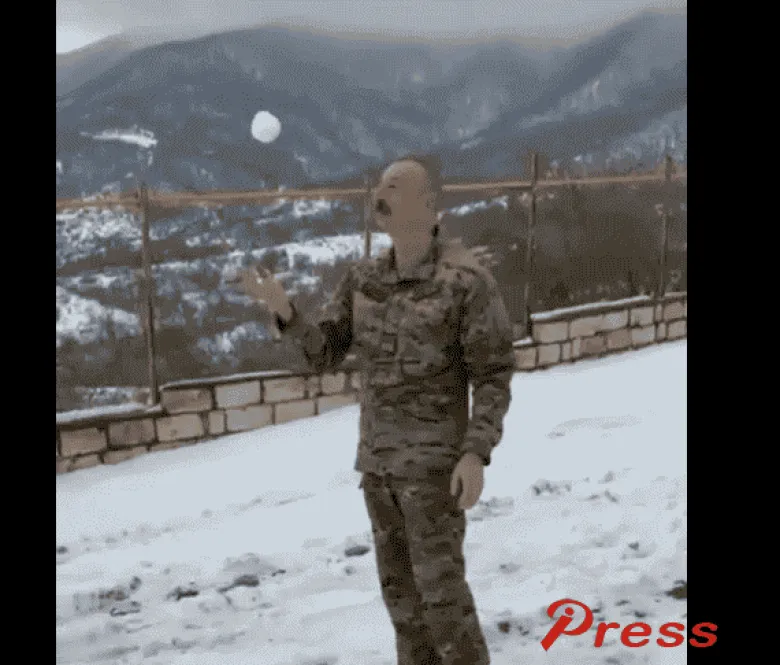 iPress.am--Հրապարակվել է տեսանյութ, որում Ադրբեջանի նախագահ Իլհամ Ալիևը ձնագնդի է խաղում Արցախի` Ադրբեջանի կողմից օկուպացված Հադրութի շրջանում: