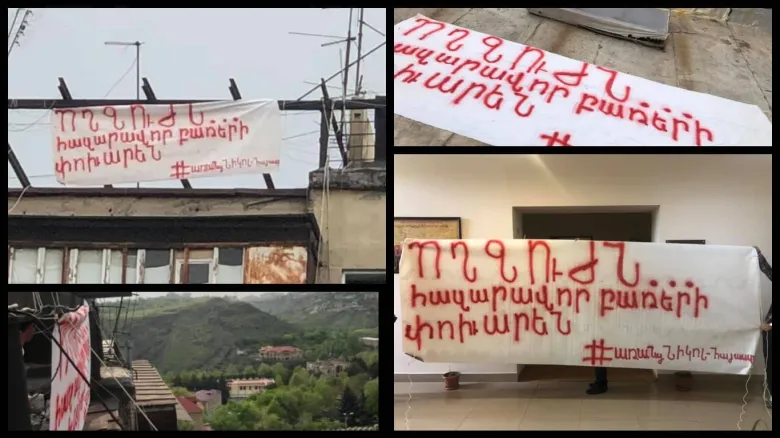 Հայտնի է, թե ովքեր են պաստառ փակցրել Նիկոլ Փաշինյանի առանձնատան դիմաց