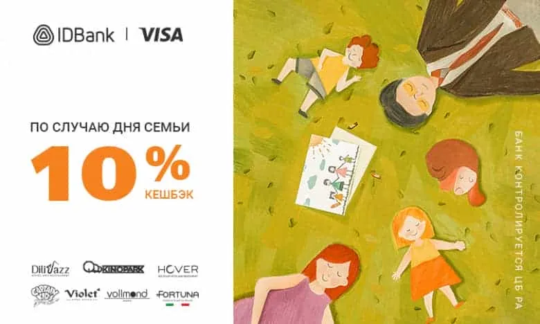 10% кешбэк по картам Visa IDBank-а по случаю дня семьи