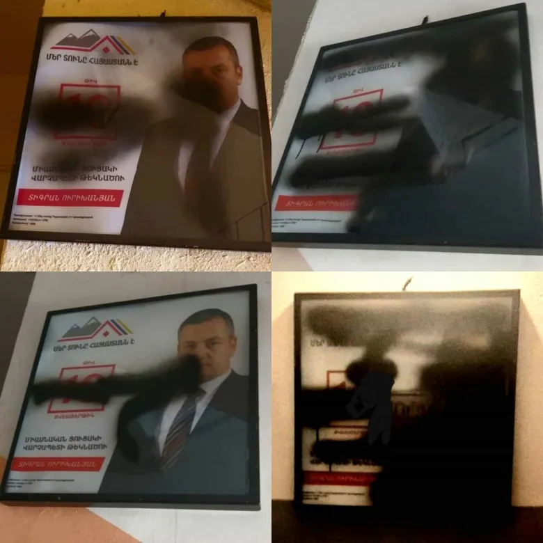 ՀՀ գլխավոր դատախազին և ՀՀ ոստիկանության պետին ուղարկվել է հետևյալ դիմումը. Հայտնում ենք, որ Երևան քաղաքի բազմաբնակարան շենքերում հատուկ սահմանված գովազդային լուսատախտակների մեջ տեղադրված են թիվ 10 քվեաթերթիկի նշումով և «Մեր տունը Հայաստանն է» միասնական ցուցակի վարչապետի թեկնածու Տիգրան Ուրիխանյանի պատկերով քարոզչական պաստառները: Վերջին օրերին մեր շտաբի ներկայացուցիչները ֆիքսել են հետևյալը՝ բազմաթիվ շենքերում միատիպ ձեռագրով վնասվում և փչացվում են տեղադրված լուսատախտակները: Նույն մեթոդաբանությամբ խոչընդոտվում են օրինական քարոզչություն իրականացնելու մեր հնարավորությունները: Բացի այն, որ դա տարրական այլանդակություն է, որն իրականացնում են դժկամ և վարկաբեկված մրցակիցները, դա նաև առաջացնում է քրեական պատասխանատվություն: ՀՀ գլխավոր դատախազությունից և ՀՀ ոստիկանությունից պահանջվել է փաստի առթիվ ձեռնարկել միջոցներ, հարուցել քրեական գործ և պատասխանատվության ենթարկել մեղավորներին: