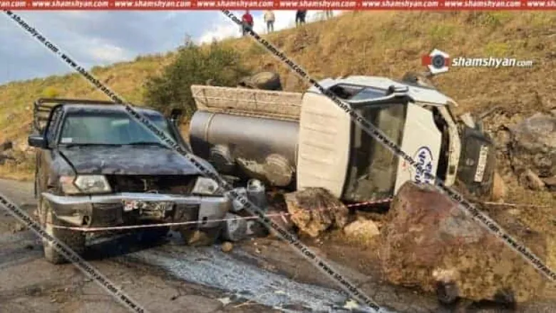 «Արզնի կաթ» ընկերության մեքենաները մի քանի պտույտ գլորվելով հայտնվել են երթևեկելի գոտուց դուրս. կան վիրավորներ (ֆոտո)