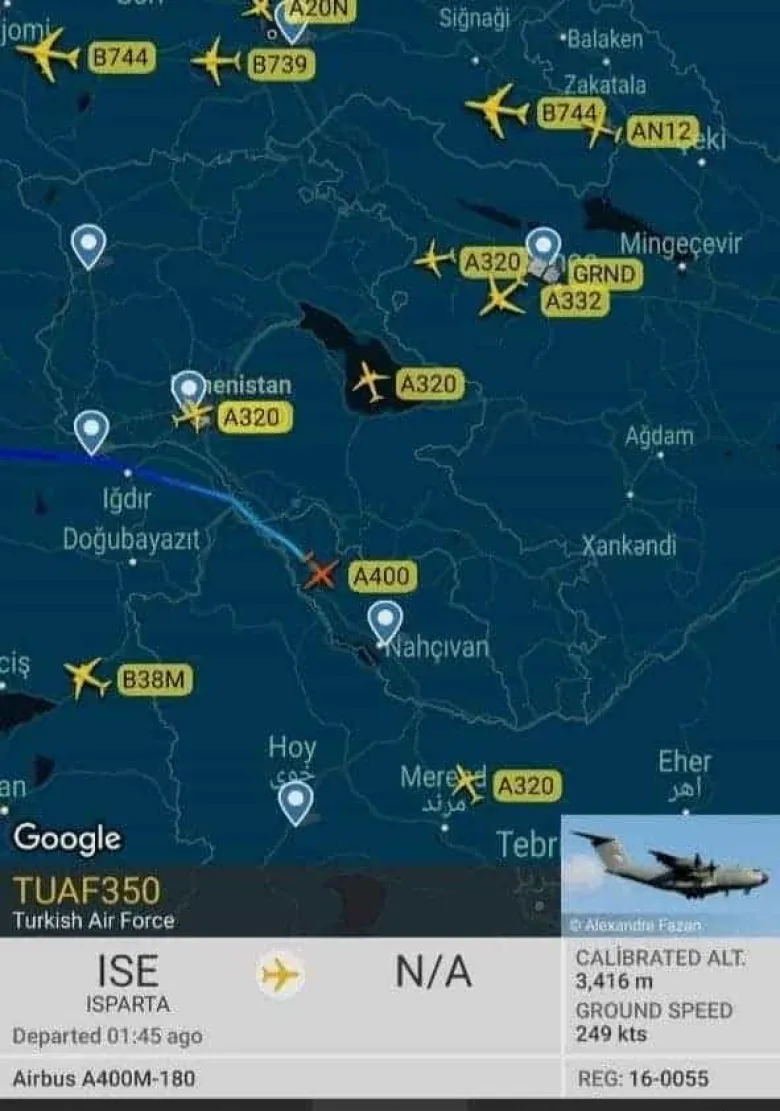 Սահմանային լարվածության ֆոնին Նախիջևանում վայրէջք է կատարել թուրքական զինված ուժերին պատկանող Airbus A400M-180 ռազմական տրանսպորտային ինքնաթիռը. Բալյան