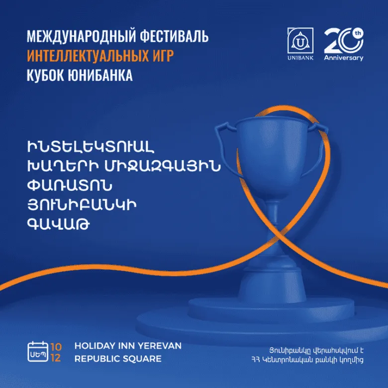 С 10 по 12 сентября 2021 года в Ереване состоится международный фестиваль интеллектуальных игр «Кубок Юнибанка». Мероприятие приурочено к 20-летию ОАО «Юнибанк», выступающего генеральным спонсором события.