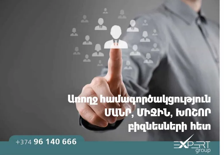 «Էքսպերտ գրուպը» աշխատում է թե նոր ձևավորվող, թե արդեն տարիների փորձառություն ունեցող, թե մանր ու միջին, թե խոշոր բիզնեսների հետ՝ օգնելով նրանց կայանալ ոլորտում, գնահատել ռիսկերը, որոշել զարգացման ճիշտ մարտավարություն, ապահովել կայուն առաջխաղացում։ ։ Ահա այն առավելությունները որ տալիս է ընկերությունը իր հաճախորդին․ Հարկային ռիսկերի նվազեցում, ճիշտ կառավարչական որոշումներ կայացնելու համար տեղեկատվության, վերլուծությունների ապահովում, կազմակերպության գործընթացների վերահսկողության ապահովում, ավելորդ փաստաթղթաշրջանառությունից ազատում, հարկային մարմինների հետ հաղորդակցությունից ազատում, վստահելի գործընկերոջ ձեռքբերում: