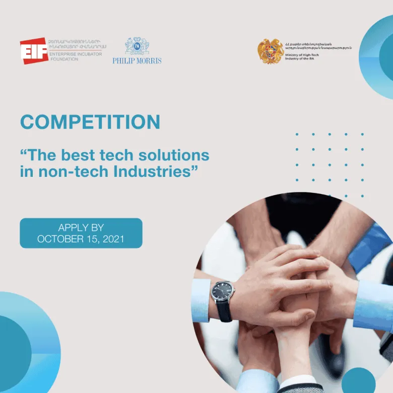 We are happy to announce the launch of the “Best tech ideas and solutions in non-tech” competition which is implemented by the Enterprise Incubator Foundation and Philip Morris Armenia in partnership with the Ministry of High-Tech Industry of the RA.