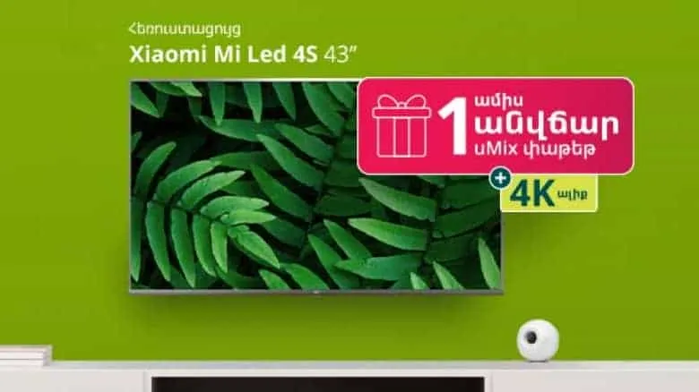 Այսուհետ Ucom-ի առցանց խանութում նոր բաժանորդները կարող են ձեռք բերել Xiaomi Mi Led 4s կամ Xiaomi Mi TV P1 հեռուստացույցներից մեկը և ստանալ 1 ամիս անվճար uMix փաթեթից օգտվելու և 4K ալիք դիտելու հնարավորություն: Իսկ Ucom TV առկա բաժանորդները կստանան 10% զեղչ, ինչպես նաև 4K որակի «Love Nature» հեռուաստաալիքը 1 ամիս անվճար վայելելու հնարավորություն: