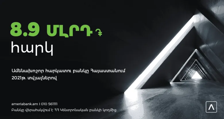«2021 թվականին Ամերիաբանկը պետական բյուջե է վճարել 8.9 մլրդ ՀՀ դրամ հարկ` դառնալով ՀՀ բանկային համակարգի ամենախոշոր հարկատուն»: