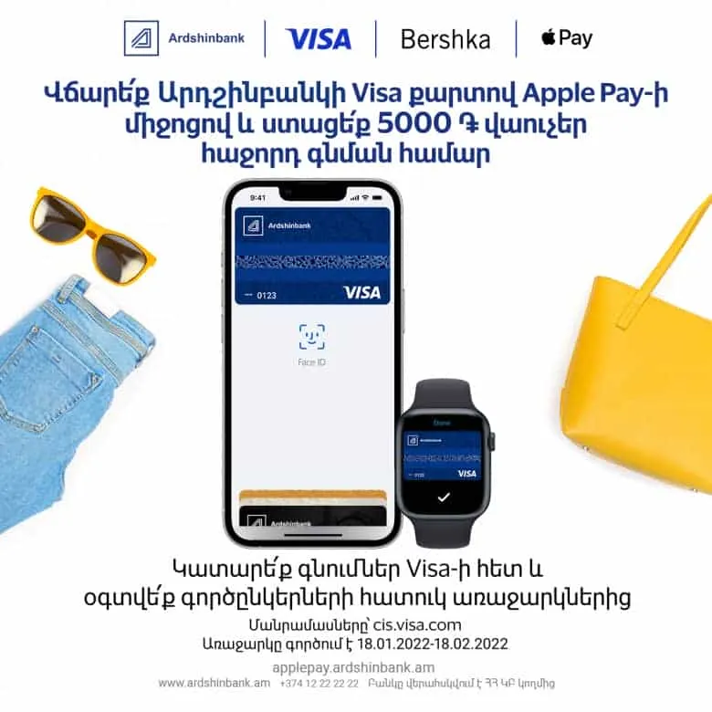 Վճարե՛ք Արդշինբանկի Ձեր Visa քարտով Apple Pay-ով և ստացե՛ք 5000 դրամի համարժեք վաուչեր հաջորդ գնման համար հետևյալ խանութներում.