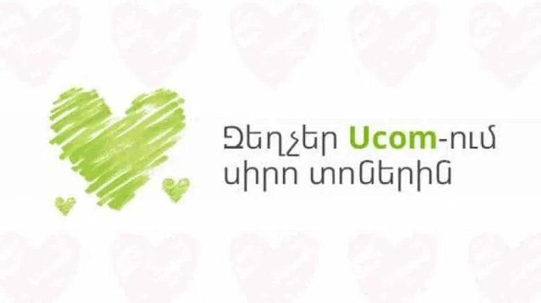 «Յուքոմ» ընկերությունը հանդես է եկել «Զեղչեր Ucom-ում սիրո տոներին» առաջարկով, որի շրջանակներում մինչև փետրվարի 14-ը ներառյալ մի շարք սարքավորումներ կզեղչվեն 5-15%-ով: