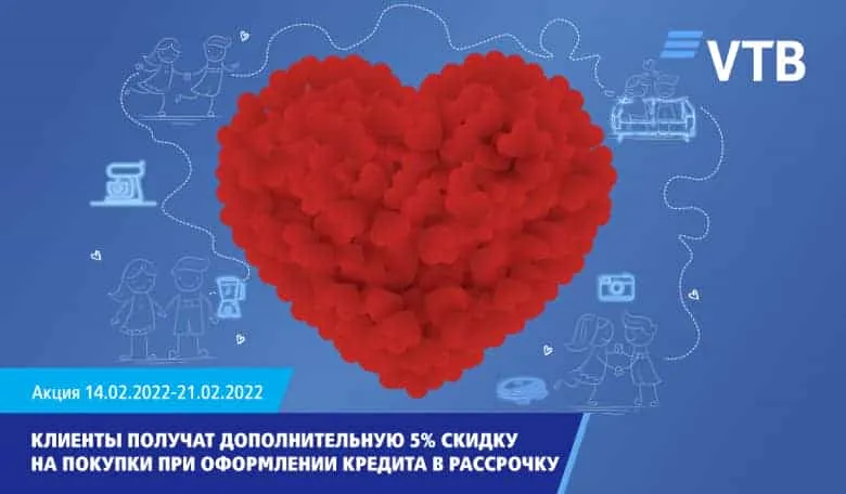 При оформлении потребительского кредита банка ВТБ (Армения) до 21 февраля в торговых точках партнеров, клиенты получат скидку на покупку товара. Скидка составит 5% от суммы кредита.