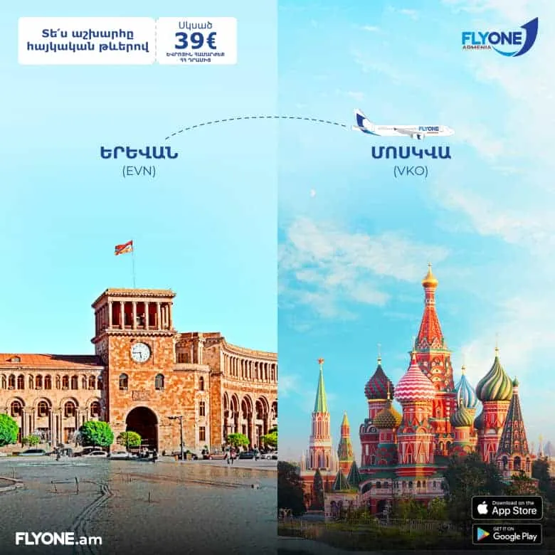Հայաստանի և Ռուսաստանի Դաշնության ավիացիոն իշխանությունների թուլտվությամբ` FLYONE ARMENIA ավիաընկերությունը սույն թվականի մարտի 1-ից սկսում է Երևան - Մոսկվա - Երևան երթուղով կանոնավոր ուղիղ չվերթները: