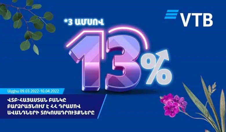 ՎՏԲ-Հայաստան Բանկը բարձրացնում է ՀՀ դրամով ավանդների տոկոսադրույքները