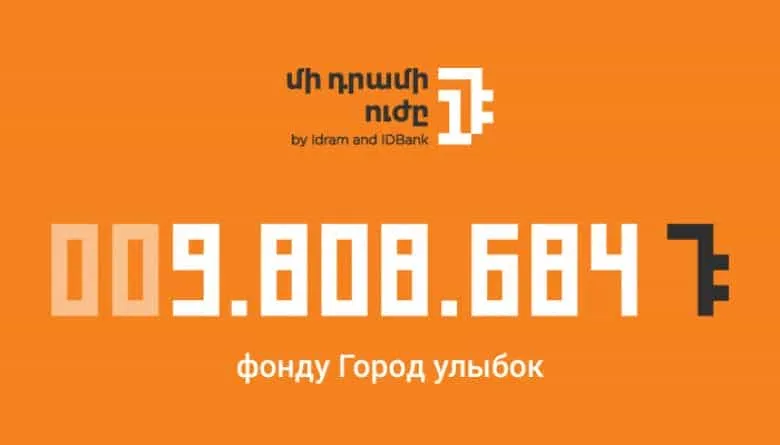 IDBank и Idram подвели итоги очередной программы инициативы «Сила одного драма»․ Вся сумма, собранная за январь и февраль – 9 808 684 драмов, была переведена в благотворительный фонд «Город улыбок».
