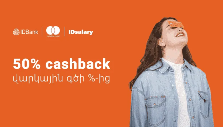 Սույն թվականի հուլիսի 1-ից մինչև հոկտեմբերի 1-ը IDSalary փաթեթի շրջանակում պատվիրեք IDBank-ի Mastercard Standard և Mastercard Gold քարտեր և Ձեր՝ վարկային գծի դիմաց վճարած տոկոսագումարներից կստանաք 50% քեշբեք: