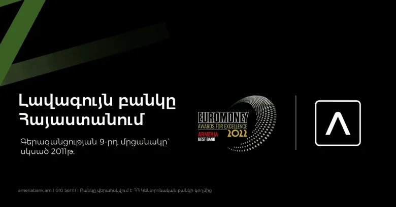 Ամերիաբանկին շնորհվել է Euromoney ամսագրի` «2022թ. լավագույն բանկը Հայաստանում» Գերազանցության մրցանակը Լոնդոնում կայացած մրցանակաբաշխության ժամանակ: Հեղինակավոր մրցանակաբաշխությունը, որն առաջատար եվրոպական ֆինանսական ամսագրի կողմից անցկացվում է 1992 թ-ից ի վեր, գնահատում է բանկային ոլորտի մասնակիցների ֆինանսական արդյունքները, սպասարկման որակը, պրոդուկտների նորարարությունը, թվայնացման մակարդակը և այլ ձեռքբերումները: