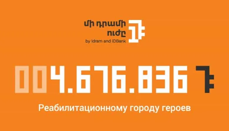 В рамках совместной инициативы IDBank-а и Idram-а «Сила одного драма» вся сумма, собранная за август - 4.676.836 драмов, была переведена в психологический центр «Реабилитационный город героев». В конце проекта компании также объявили имя следующего бенефициара. Все средства, накопленные за сентябрь, будут направлены в фонд «4090».