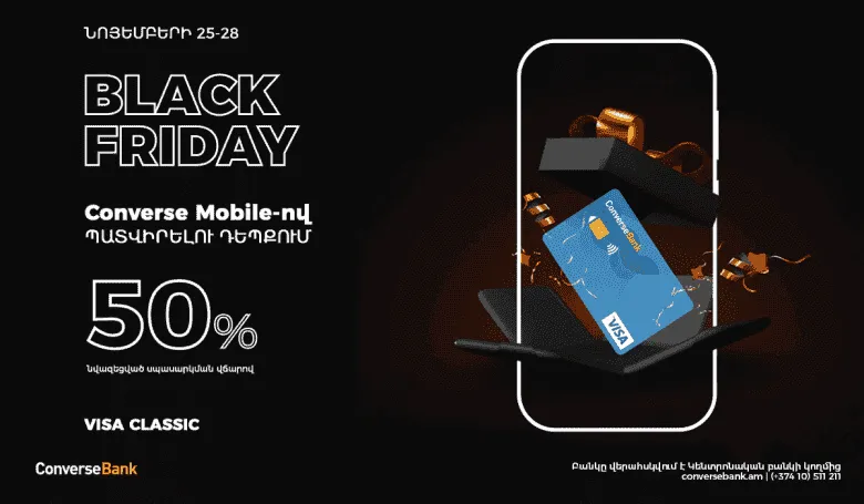 Սև ուրբաթ-ի կապակցությամբ Կոնվերս Բանկը հայտարարում է Visa Classic և Mastercard Standard քարտերի տրամադրման արշավ՝ հնարավորություն տալով ոչ միայն արտոնյալ պայմաններով ստանալ այդ վճարային քարտերը, այլև, համապատասխան ընտրության դեպքում, մասնակցել Visa քարտապանների համար Google Pay-ով անկանխիկ գնումներից գումարի վերադարձի արշավին: Դրա շրջանակում Google Pay-ով վճարումներ կատարած առաջին 1000 ՀՀ ռեզիդենտ Visa քարտապանները կստանան cashback: