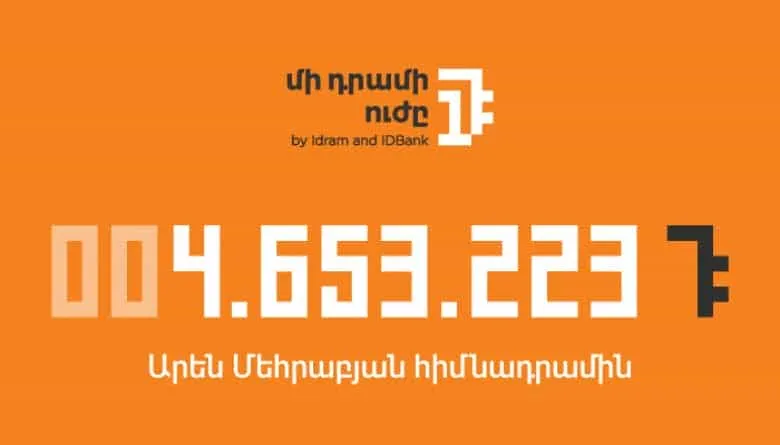 Նոյեմբեր ամսվա վերջին IDBank-ն ու Իդրամը ամփոփեցին «Մի դրամի ուժը» նախաձեռնության հերթական ծրագիրը։ Այս ամսվա ընթացքում կուտակված բոլոր «մի դրամները»՝ 4․653․223 դրամ, փոխանցվելու են «Արեն Մեհրաբյան» բարեգործական հիմնադրամին։