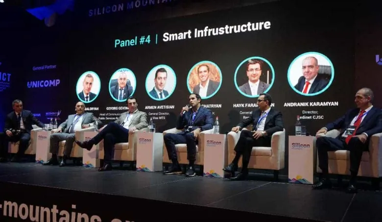 Организованная в рамках итогового международного технологического саммита Silicon Mountains 2022 панельная дискуссия «Умная инфраструктура» собрала руководителей и представителей информационных и телекоммуникационных компаний Армении, Комиссии по регулированию общественных услуг (КРОУ), а также Союза работодателей информационных и коммуникационных технологий (ICTEM) под одной крышей. В панельной дискуссии приняли участие генеральные директоры компаний Ucom, Вива-МТС, «Ростелеком» и «Рединет», начальник департамента телекоммуникаций КРОУ Геворг Геворгян и президент UEICT Армен Балдрян.