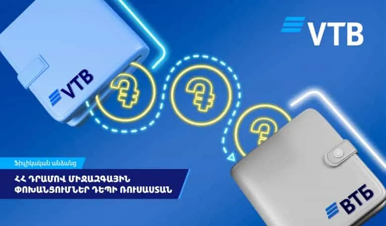 Անցյալ տարվա ընթացքում ՎՏԲ-ն ակտիվորեն մշակել է միջազգային փոխանցումների այլընտրանքային տարբերակներ։ Բանկը մեկնարկել է դրամական փոխանցումներ Ռուսաստանից Հայաստան ՀՀ դրամով՝ շահառուի բանկային տվյալների միջոցով: Փոխանցումը կատարելու համար ВТБ Онлайн հավելվածի օգտատերը պետք է նշի միայն ստացողի քարտի համարը և ԱԱՀ-ն: Բանկը մեկնարկել է նաև իր սեփական ծառայությունը՝ ռուսաստանյան հաճախորդներից ՀՀ դրամով ակնթարթային փոխանցումներ բջջային հեռախոսահամարով՝ ВТБ Онлайн հավելվածի միջոցով։ Հայաստանը դարձավ առաջին երկիրը, որտեղ մեկնարկեց նոր գործառույթը։