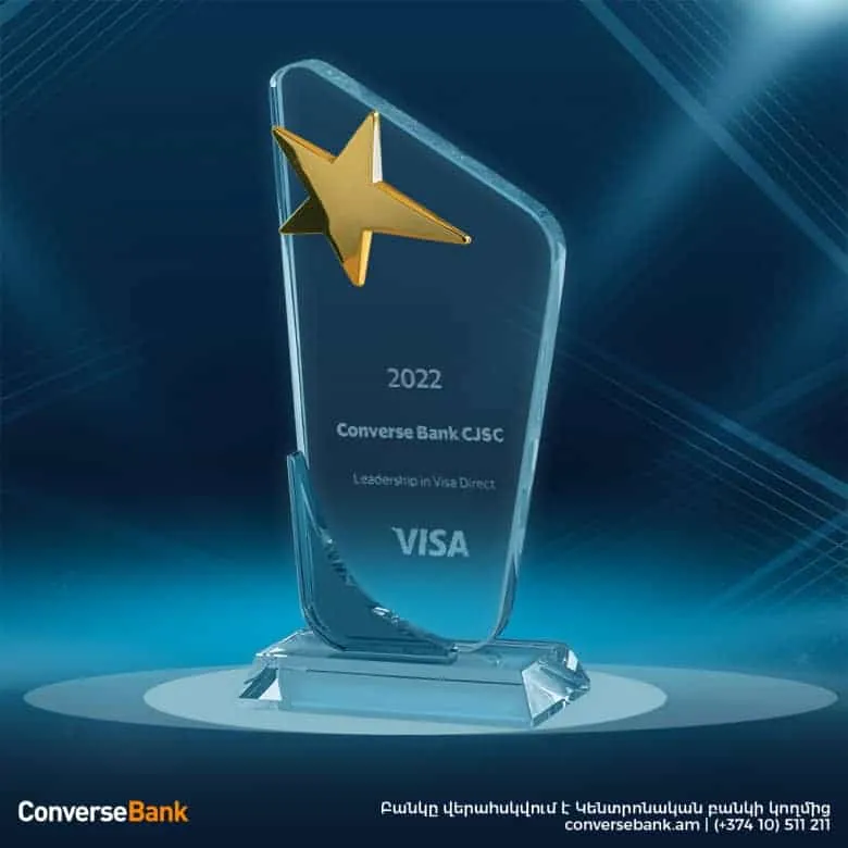 Կոնվերս Բանկի գործունեությունը հերթական անգամ բարձր գնահատական է ստացել միջազգային գործընկեր կառույցի կողմից: 2022թ-ի գործունեության արդյունքով Բանկն արժանացել է Visa միջազգային վճարահաշվարկային համակարգի Visa Direct մրցանակին: Այն Բանկին է շնորհվել Visa վճարային քարտերով «Քարտից քարտ» փոխանցումների քանակական աճի, արագության, անընդհատության ու որակի համար: