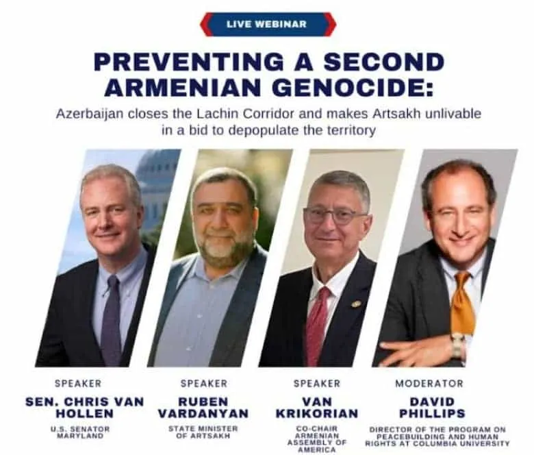 Արցախի Հանրապետության պետական նախարար Ռուբեն Վարդանյանը մասնակցել է ԱՄՆ Կոլումբիայի համալսարանի Խաղաղության հաստատման և մարդու իրավունքների ինստիտուտի կողմից կազմակերպված առցանց վեբինարին, որն անցկացվել է «Հայոց երկրորդ ցեղասպանության կանխարգելում. Ադրբեջանը փակում է Լաչինի միջանցքը և Արցախը զրկում կենսական պայմաններից՝ ձգտելով հայաթափել այն» խորագրի ներքո: