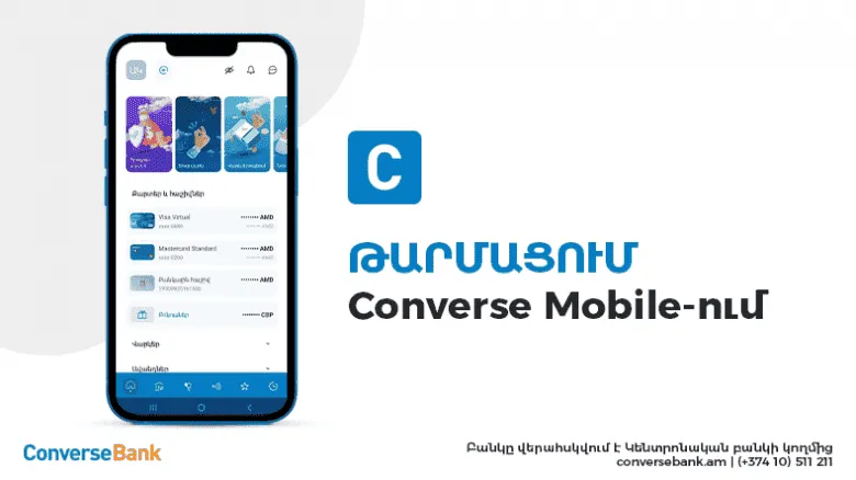 Converse Mobile-ի զարգացման ծրագրի շրջանակում Կոնվերս Բանկը ներկայացրել է նոր, թարմացված Հավելվածը՝ ավելի ֆունկցիոնալ ու գրավիչ ինտերֆեյսով: