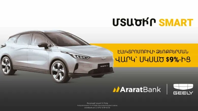 «Smart» լուծում ԱրարատԲանկից. էլեկտրոմոբիլի ձեռքբերման վարկ՝ սկսած 9%-ից