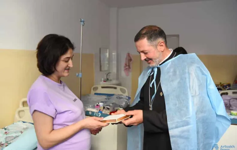 Խորհրդանշական նվերն այսօր` մայիսի 29-ին, Ստեփանակերտի «Մոր և մանկան առողջության պահպանման կենտրոն»-ում Հայ առաքելական եկեղեցու Արցախի թեմի ներկայացուցչի` Տեր Անդրեաս քահանա Թավադյանի ձեռամբ հանձնվել է նորածինների մորը: