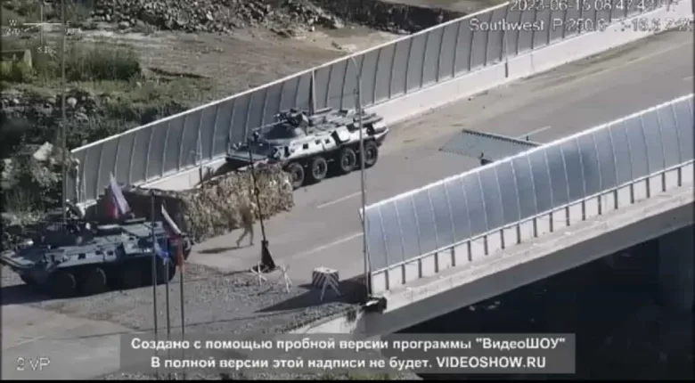 Ռուս խաղաղապահները ադրբեջանական դրոշը դեն են նետում Հակարիի կամրջից