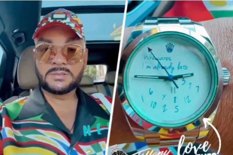 Զարդը Rolex Milgauss ժամացույցի հարմարեցված տարբերակն է, որի վրա գրված է «Who cares I'm already late» («Ի՞նչ տարբերություն, ես արդեն ուշացել եմ»): Ըստ Super-ի՝ ընդհանուր առմամբ թողարկվել է այս աքսեսուարի հինգ օրինակ՝ 18200 դոլարով։