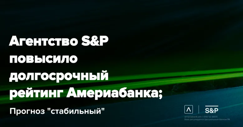 Международное рейтинговое агентство S&P Global Ratings повысило долгосрочный кредитный рейтинг эмитента Америабанка до уровня BB-, прогноз – «стабильный». Повышение рейтинга последовало за аналогичным пересмотром суверенного рейтинга Армении. Рейтинги Америабанка больше не ограничены суверенной кредитоспособностью и теперь соответствуют рейтингу bb- собственной кредитоспособности (SACP) банка.