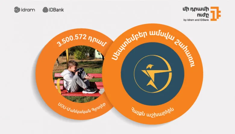 «Մի դրամի ուժը» նախաձեռնության շրջանակում օգոստոս ամսին «ՍՕՍ-Մանկական Գյուղեր» հայկական բարեգործական հիմնադրամին է նվիրաբերվել 3․500․572 դրամ։ Սա նշանակում է, որ օգոստոս ամսվա ընթացքում Idram&IDBank հավելվածով, IDBanking.am և Idram.am կայքերով, երկու ընկերությունների տերմինալներով կատարվել է 3․500․572 հատ վճարում։