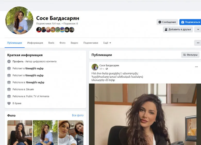 Արմեն Փամբուխչյանի կնոջ ֆեյսբուքյան էջը «կոտրել» են. «Փաստ»