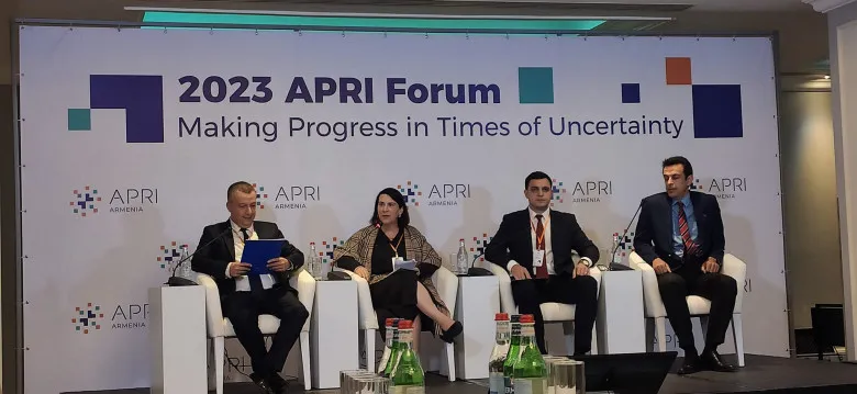 [ Սերգեյ Մելքոնյանը՝ APRI Armenia վերլուծական կենտրոնի` «Առաջընթաց անորոշության պայմաններում» խորագրով համաժողովին ]