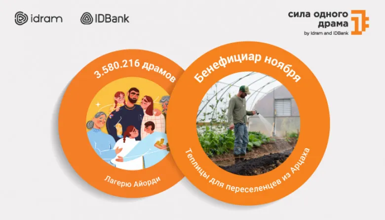 Следующая ноябрьская программа инициативы «Сила одного драма» также посвящена нашим соотечественникам, вынужденным переселенцам из Арцаха. В течение ноября накопленная сумма от всех платежей, осуществленных через платформы Idram и IDBank, будет направлена на строительство теплиц.