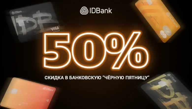 В преддверии Черной пятницы, с 10 ноября по 1 декабря включительно, закажите карты Visa Gold, Travel, Visa Platinum, Mastercard Standard от IDBank-а и получите 50% скидку на весь срок действия.