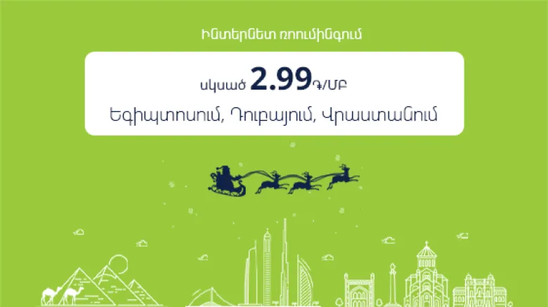 Ucom-ում մեկնարկել են Ամանորյա անակնկալները. ռոումինգում 5 դրամ 1 ՄԲ-ի դիմաց դեկտեմբերի 1-ից հունվարի 31-ը