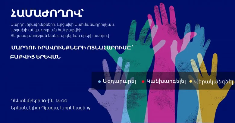 Դեկտեմբերի 10-ին, ժամը՝ 14։00-ին, Էլիտ Պլազայում (հասցեն` Մովսես Խորենացի 15) տեղի կունենա ՀԱՄԱԺՈՂՈՎ՝ նվիրված Մարդու իրավունքների պաշտպանության, Ցեղասպանության կանխարգելման միջազգային օրվան, ինչպես նաև Արցախի Սահմանադրության և Անկախության Հանրաքվեի կապակցությամբ։