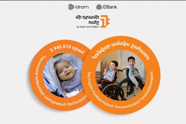 Իդրամն ու IDBank-ը ամփոփում են «Մի դրամի ուժը» նախաձեռնության դեկտեմբեր ամսվա ծրագիրը։ Դեկտեմբերին ընկերությունների հաճախորդների կատարած վճարումների դիմաց կուտակված «մի դրամները»՝ 3.945.010 դրամ, այս ամիս ուղղվում են Հայաստանի երեխաների առողջության հիմնադրամին։