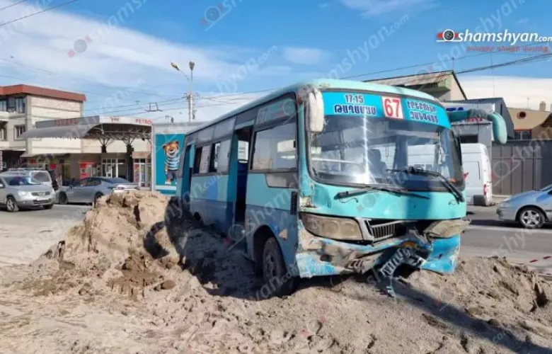 Երևանում թիվ 67 երթուղու ավտոբուսը բախվել է 4 ավտոմեքենայի, այնուհետ՝ հողաթմբին. կան տուժածներ