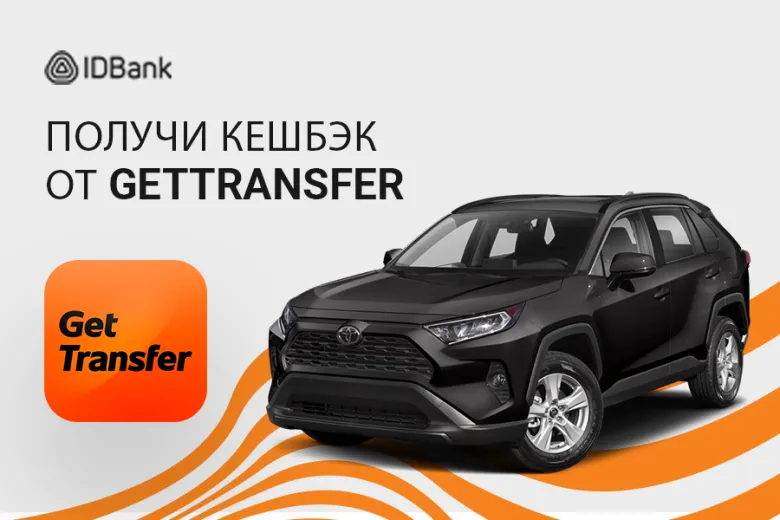- Вы можете получить 10% кешбэк, совершая платежи на GetTransfer с помощью карт IDBank's Travel, Visa Infinite Special Edition.