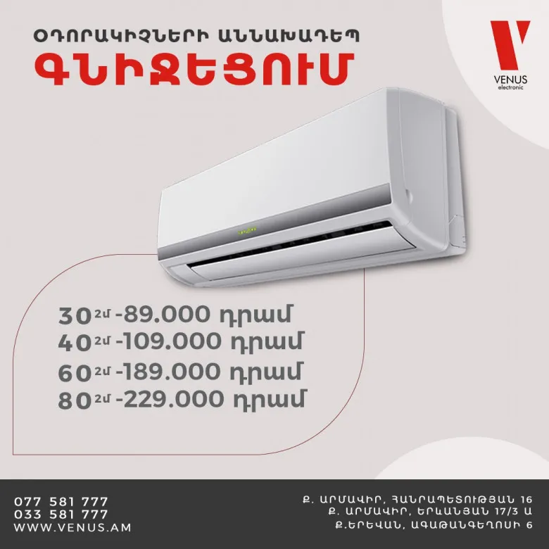 Օդորակիչների աննախադեպ գնիջեցում՝ «Վենուս» էլեկտրոնիկայի խանութ-սրահներում