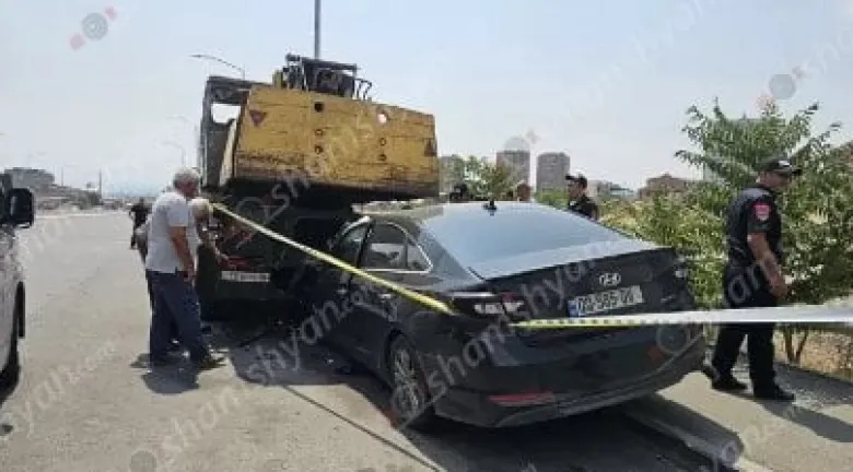 Жуткое ДТП в Ереване: автомобиль врезался в подъемный кран, погиб водитель