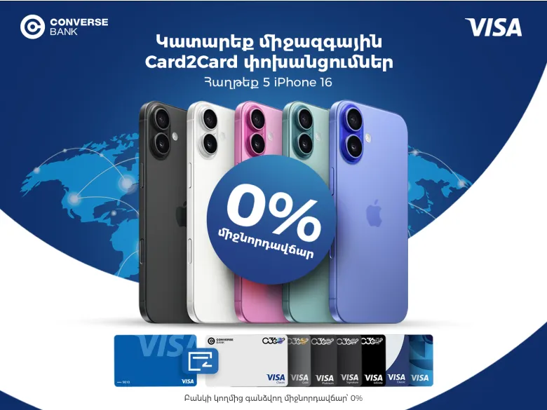 5 հատ iPhone 16 և 0% միջնորդավճար. Կոնվերս Բանկը Visa քարտապանների համար նոր արշավ է մեկնարկել
