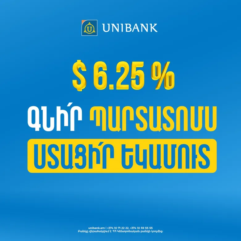 Յունիբանկը թողարկել է 10 մլն ԱՄՆ դոլարի ստորադաս պարտատոմսերի թողարկման մասին: Տարեկան արժեկտրոնային տոկոսադրույքը կազմում է 6.25%, պարտատոմսերի մարման ժամկետը՝ 7 տարի: Արժեկտրոնային եկամուտը կվճարվի եռամսյակը մեկ: